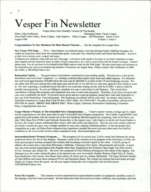 Vesper Fin Newsletter, 2000 May