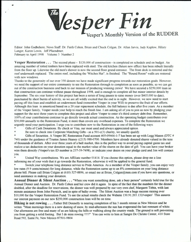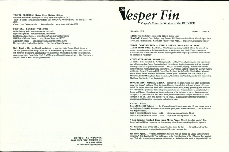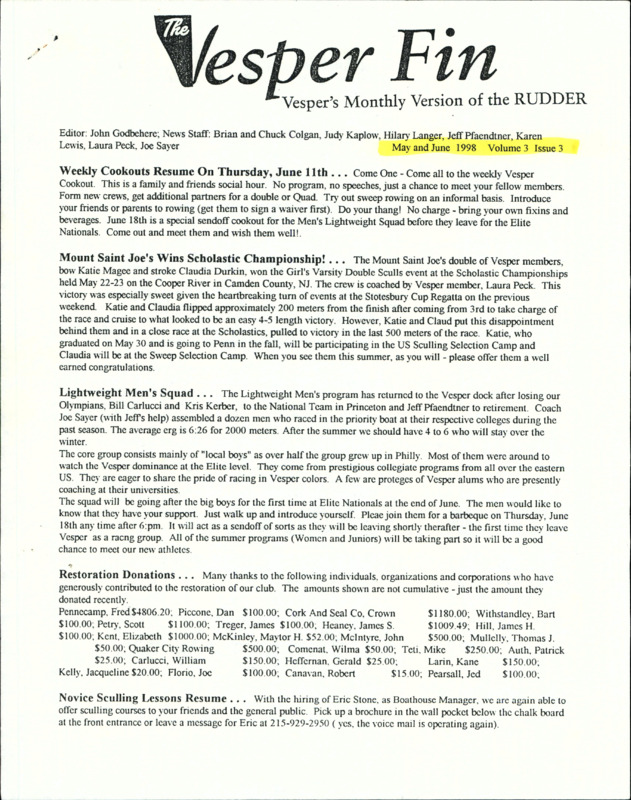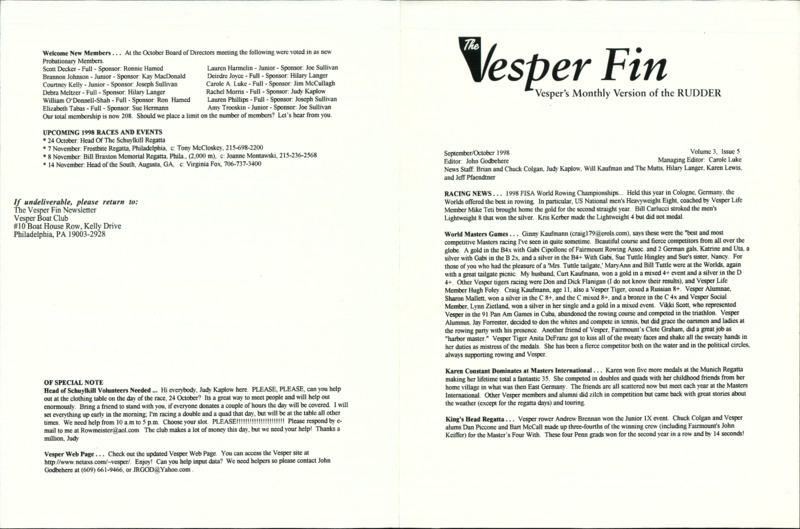 Vesper Fin Newsletter, 2000 May